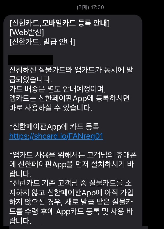 모바일 카드는 발급이 되었지만 아직 실물 카드가 오지 않았네요 ㅠㅠ