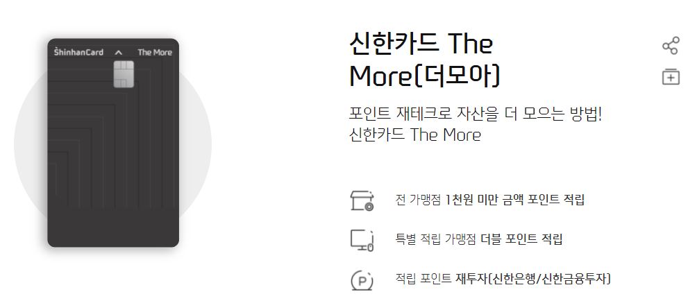 오늘 제가 소개해드릴 신용카드는 신한 더모아(The more) 카드입니다!